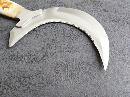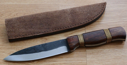 10” Fixed Blade Knife Carbon Steel Hand Forged Recurve Wood Handle Leather Case