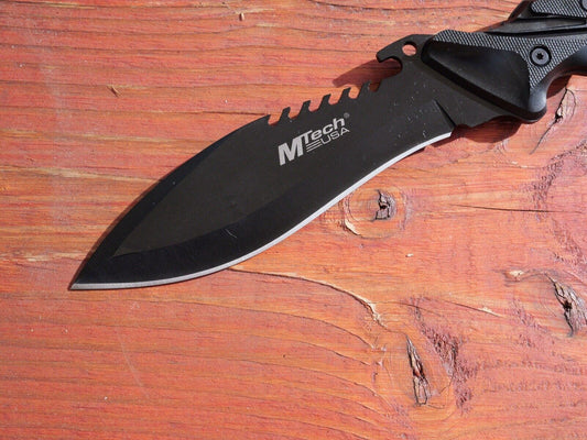 10” Fixed Blade Knife Spear Point Double Edge Full Tang Sharp Black Stealth Boot