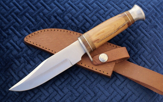 10” Fixed Blade Knife Survival Olive Wood Handle Custom Leather Sheath 5.5” Edge