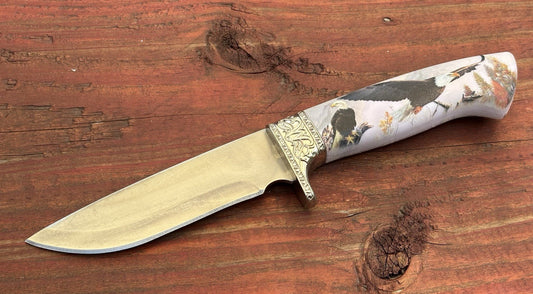 10” Eagle Print Fixed Blade Knife USA Nylon Sheath Belt Loop