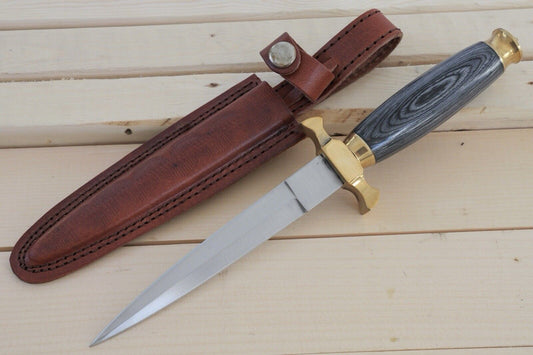 10” Mini Boot Knife Double Edge Spear Point Leather Sheath Belt Loop Wood Handle