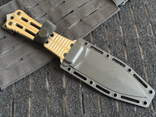 10” Fixed Blade Knife Spear Point Double Edge Full Tang Sharp Gold Stealth Boot