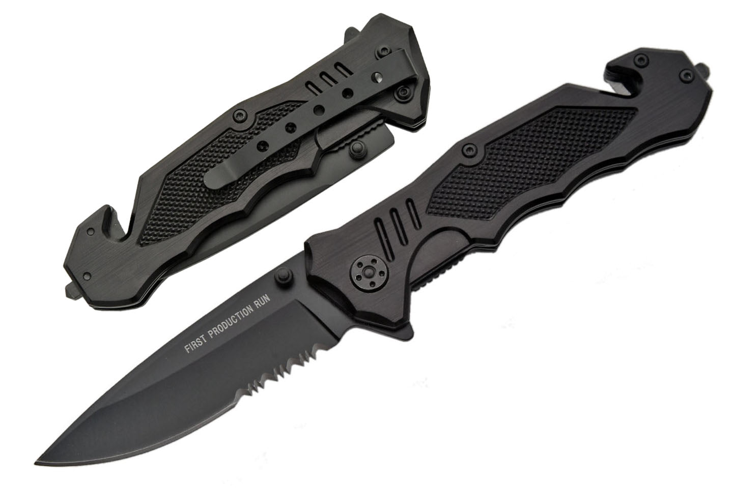 Rescue Tactical Pocket Knife Surgical Steel Glass Breaker Seat Belt Cutter 4.5” EMT 1045 Surgical Steel Blade